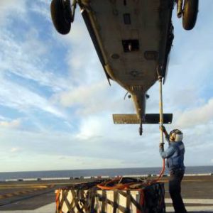 Sikorsky Black Hawk helicopter using Davis Aircraft cargo securing systemsDavis Aircraft cargo securing systems being used by a Sikorsky Sea Hawk on an aircraft carrier